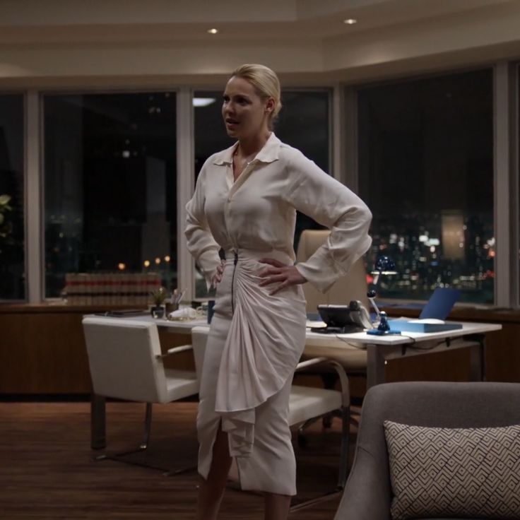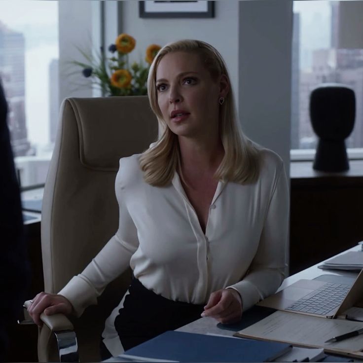 As advogadas mais fashionistas vão gostar da Samantha! Os looks dessa personagem possuem um pouco mais de drama, com texturas e recortes menos óbvios. Para modular essa escolha (e comunicar mais segurança) o cabelo dela está sempre bem alinhado, seja solto ou preso. Além disso, ela também abusa do monocromático.